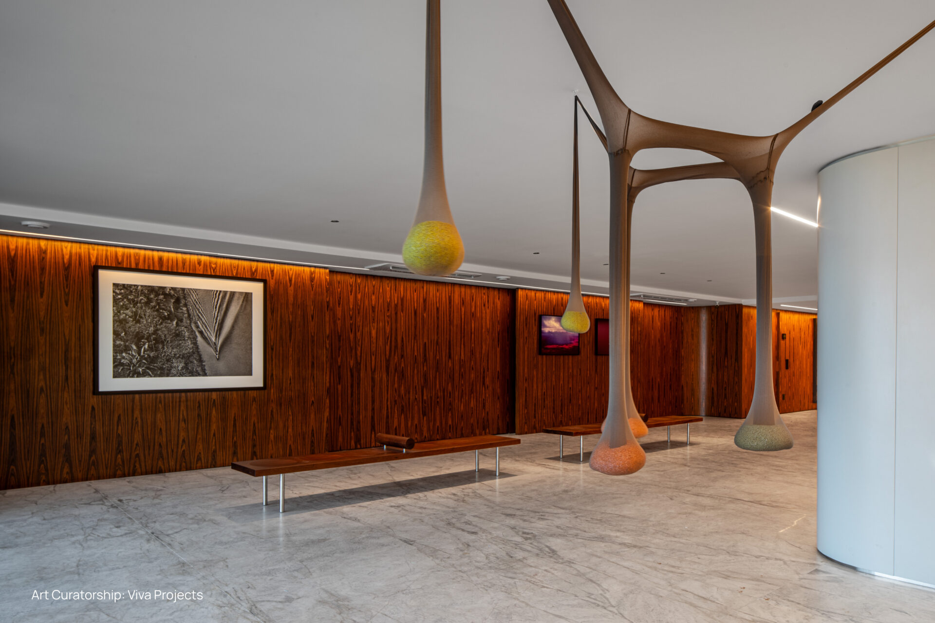 This multidisciplinary project also offered the opportunity to incorporate Brazilian contemporary art. Curated by Viva Projects, artists such as Iole de Freitas, Ernesto Neto, Sebastião Salgado, Vik Muniz, the Campana brothers, Sonia Gomes, and Claudia Andujar exhibit artworks both in the lobby and public areas.