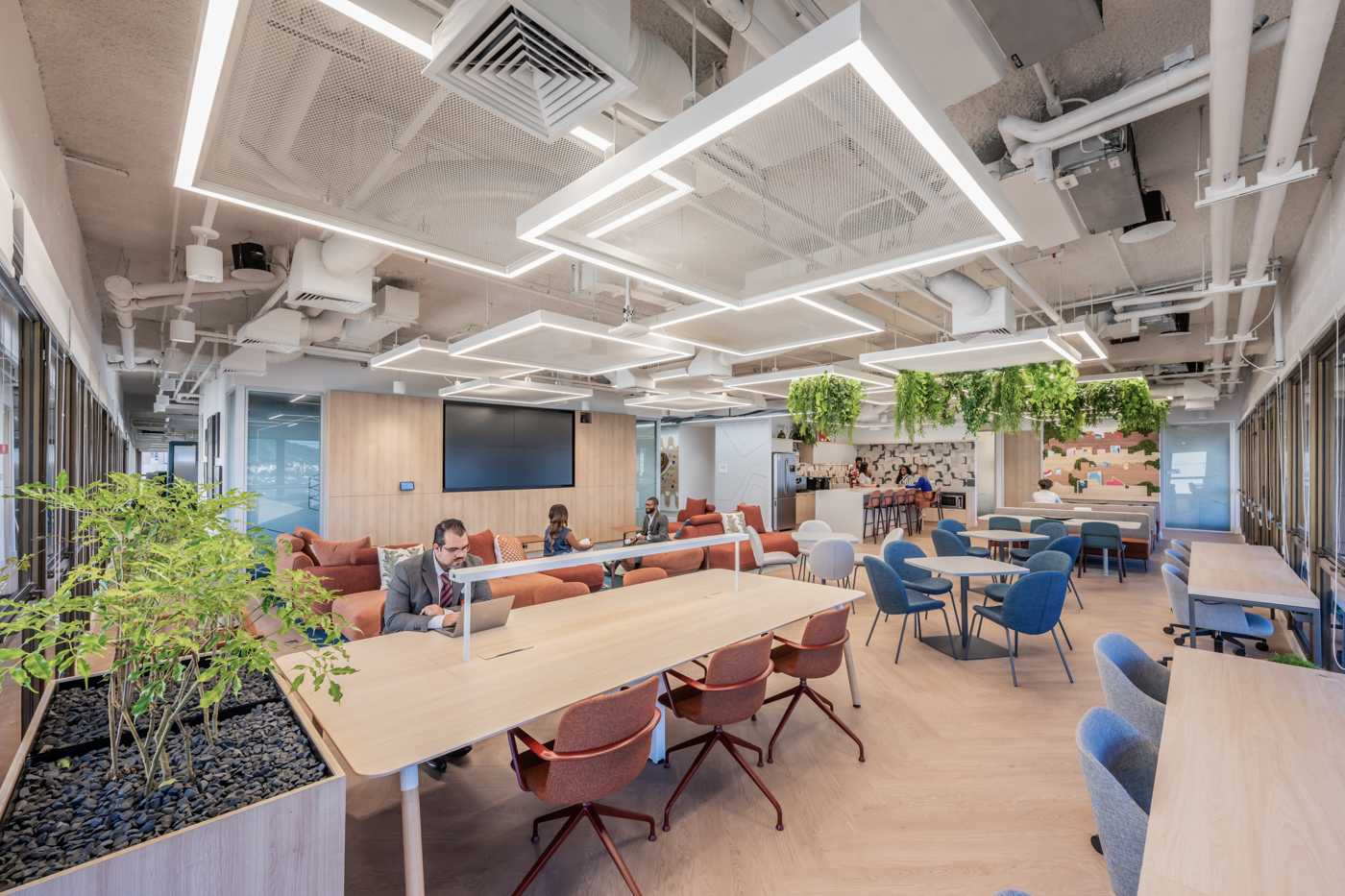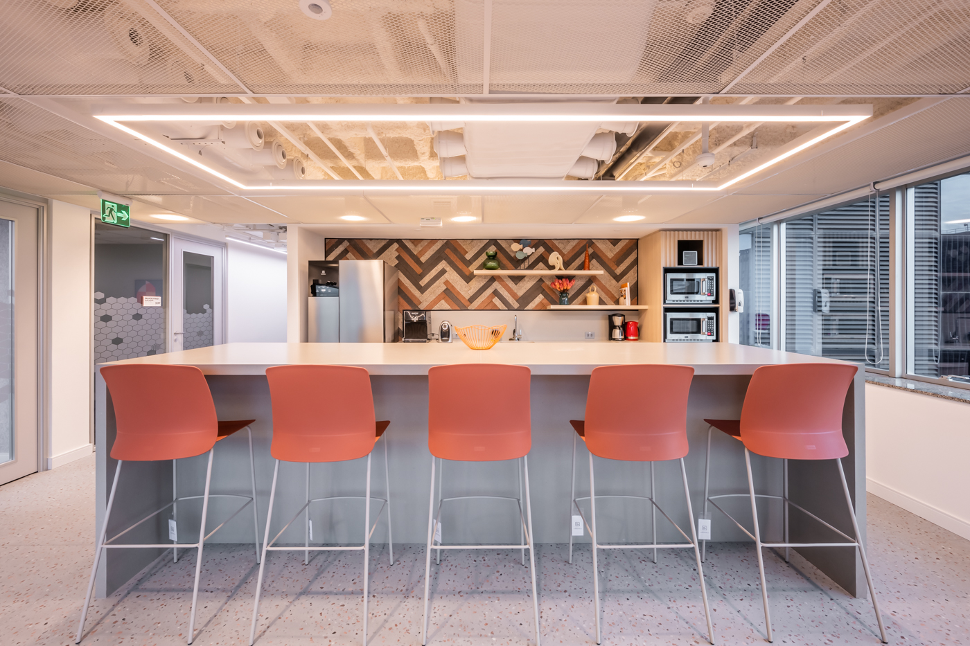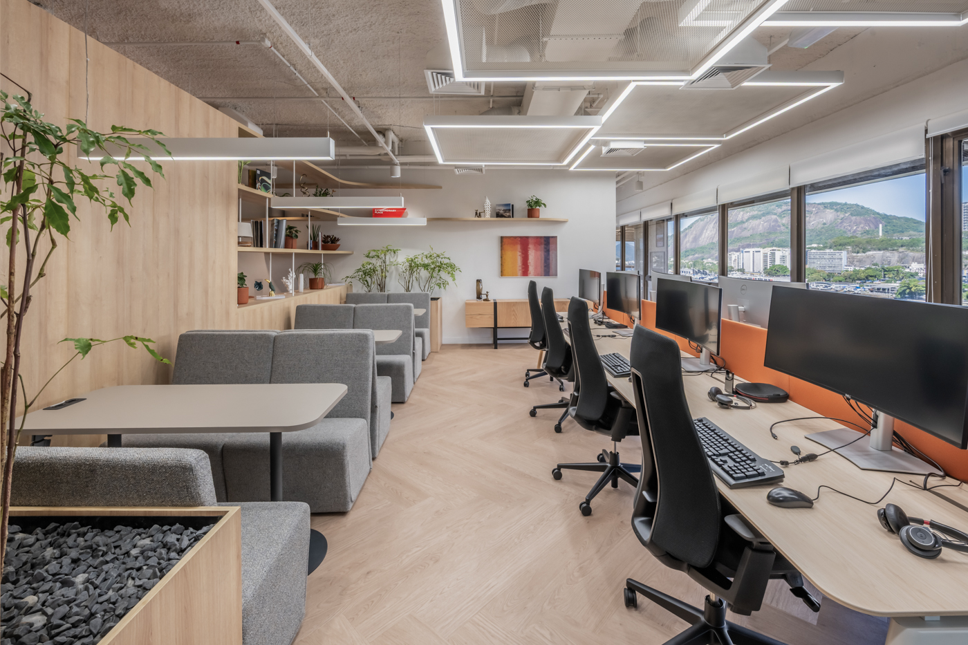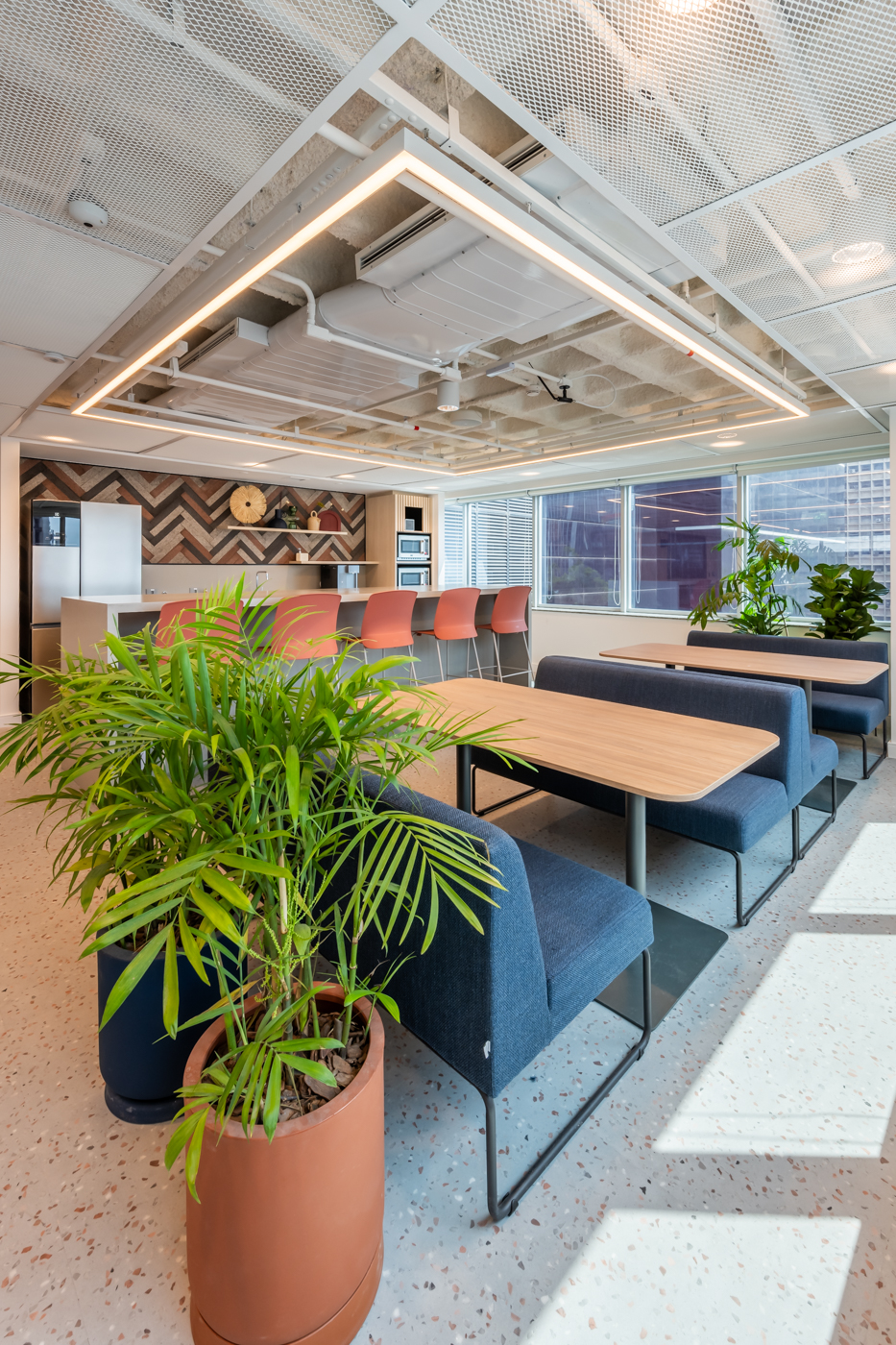 Priorizando o bem-estar, os projetos oferecem ambientes que possibilitam múltiplas formas de trabalhar: salas de foco, mesas comunitárias para colaboração e áreas descontraídas, onde cada colaborador pode melhor aproveitar o escritório de acordo com suas necessidades ao longo do dia.