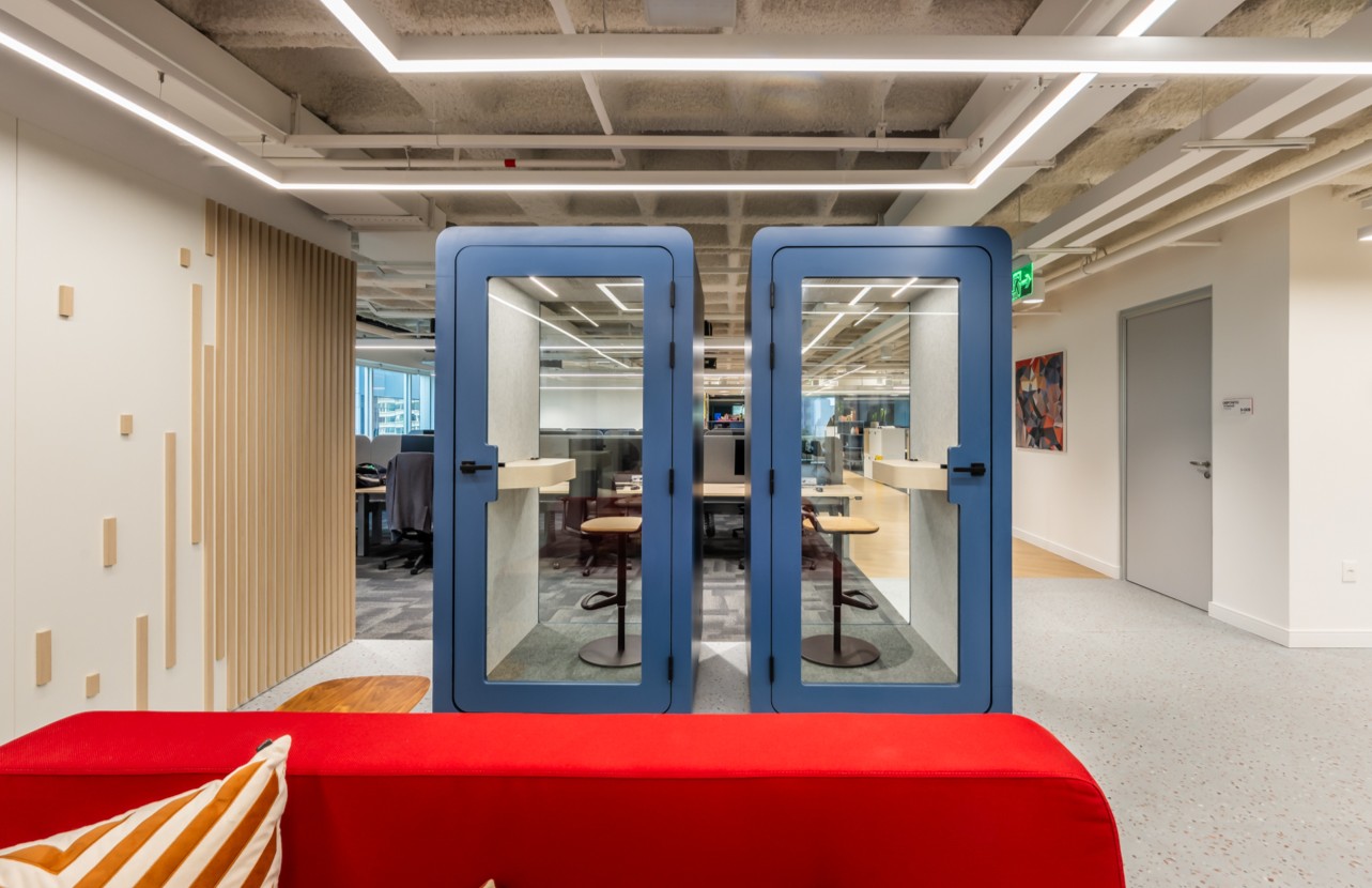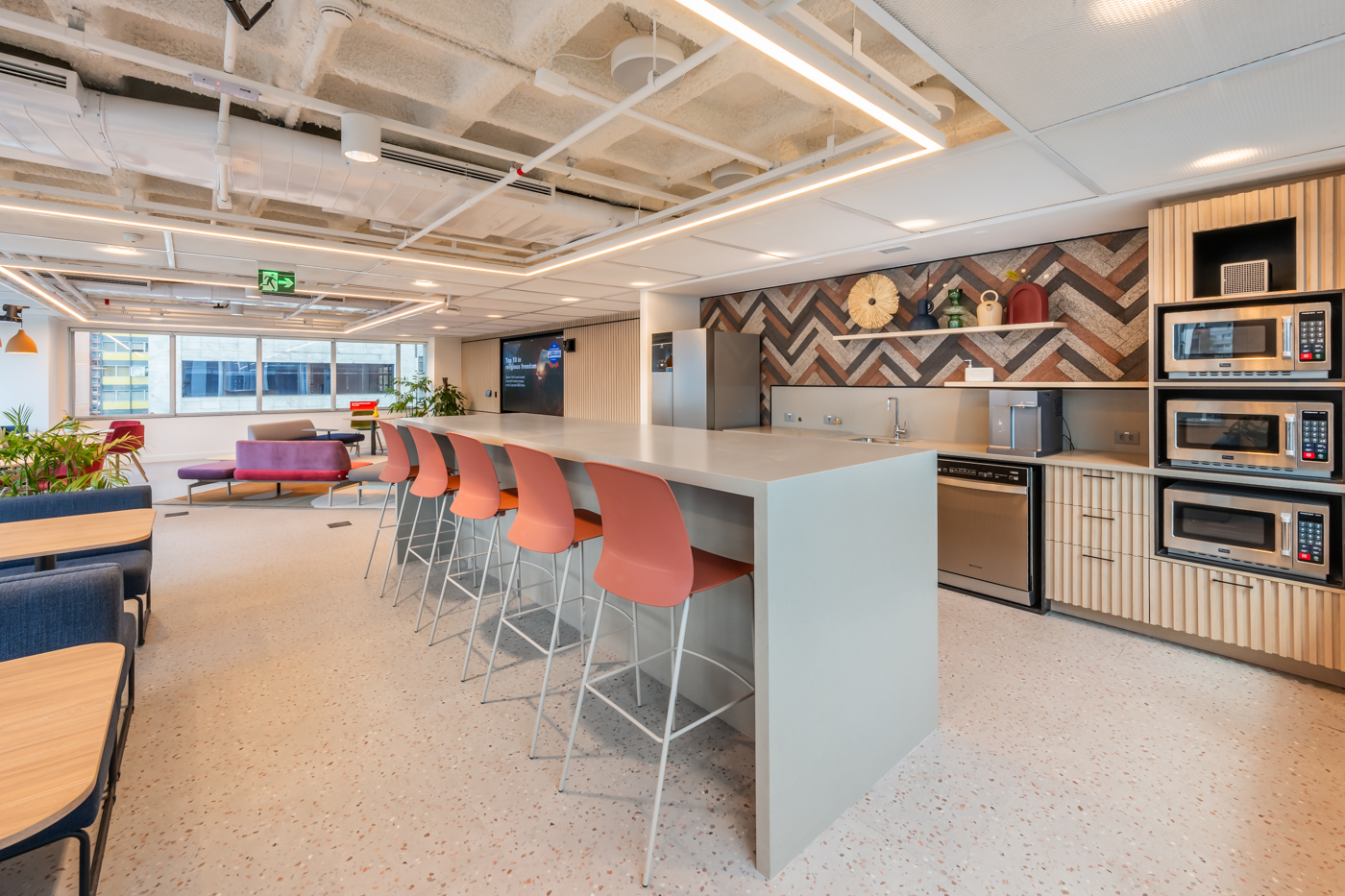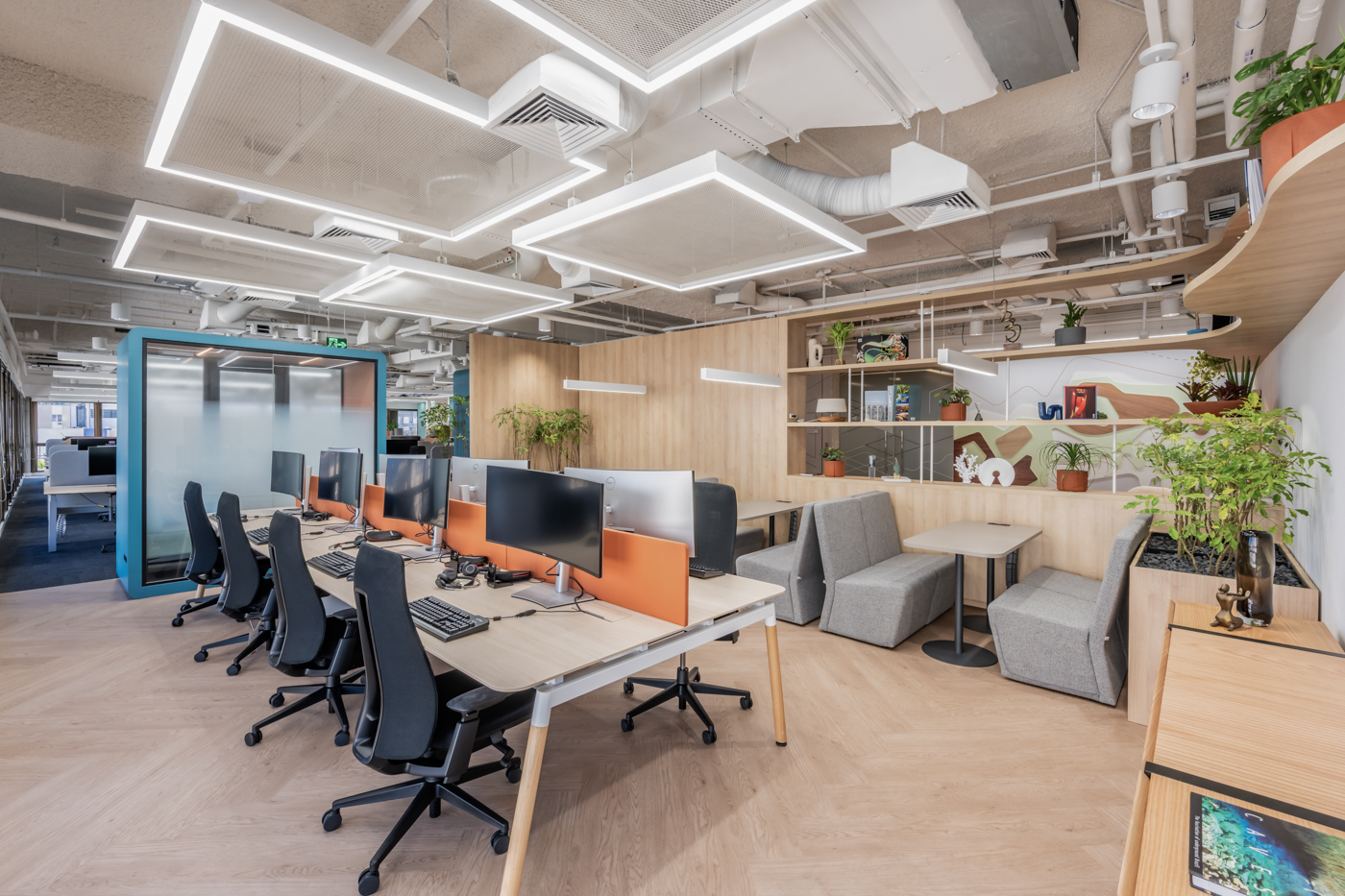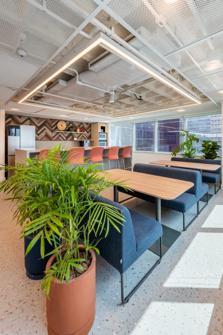 Priorizando o bem-estar, os projetos oferecem ambientes que possibilitam múltiplas formas de trabalhar: salas de foco, mesas comunitárias para colaboração e áreas descontraídas, onde cada colaborador pode melhor aproveitar o escritório de acordo com suas necessidades ao longo do dia.
