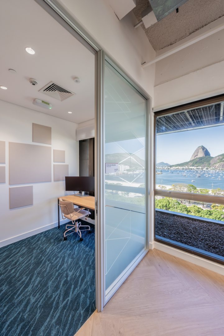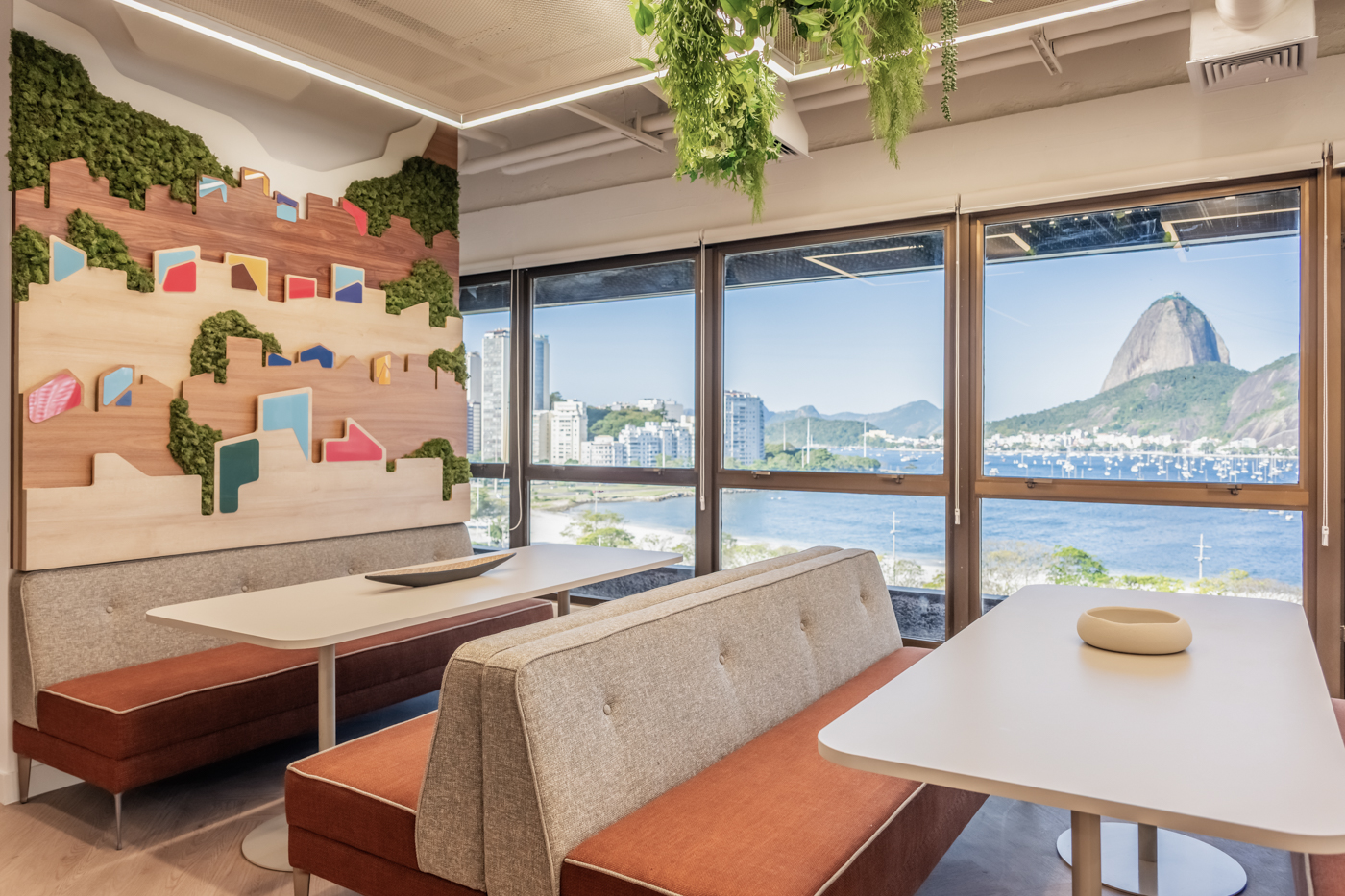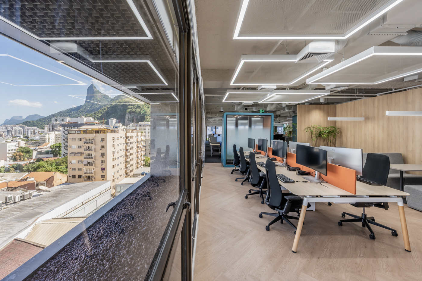 A reorganização dos espaços, priorizando áreas de staff, colaboração e descontração junto às fachadas, foi fundamental para que todos pudessem aproveitar a paisagem, tanto em momentos individuais, quanto em trabalhos coletivos.