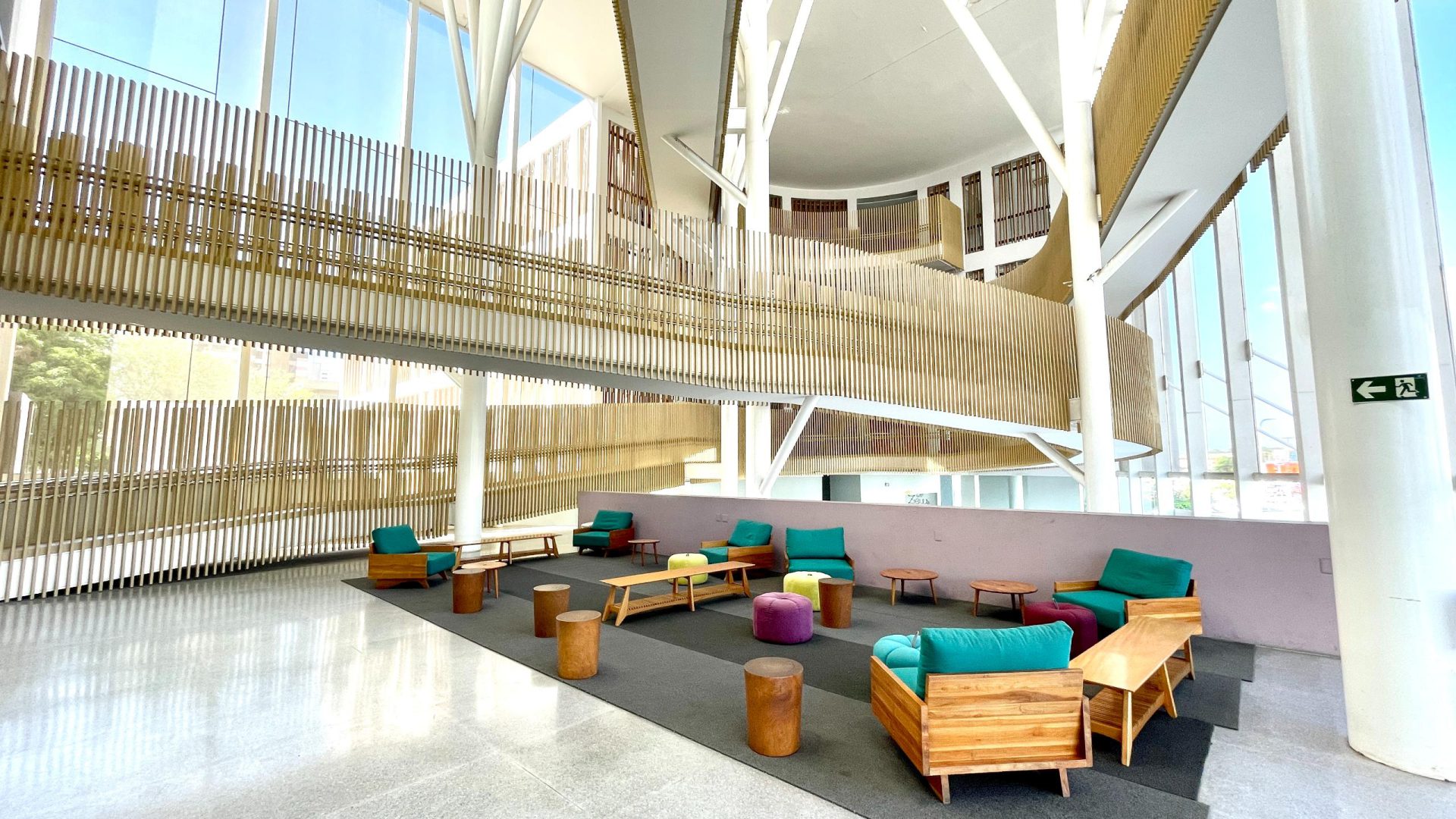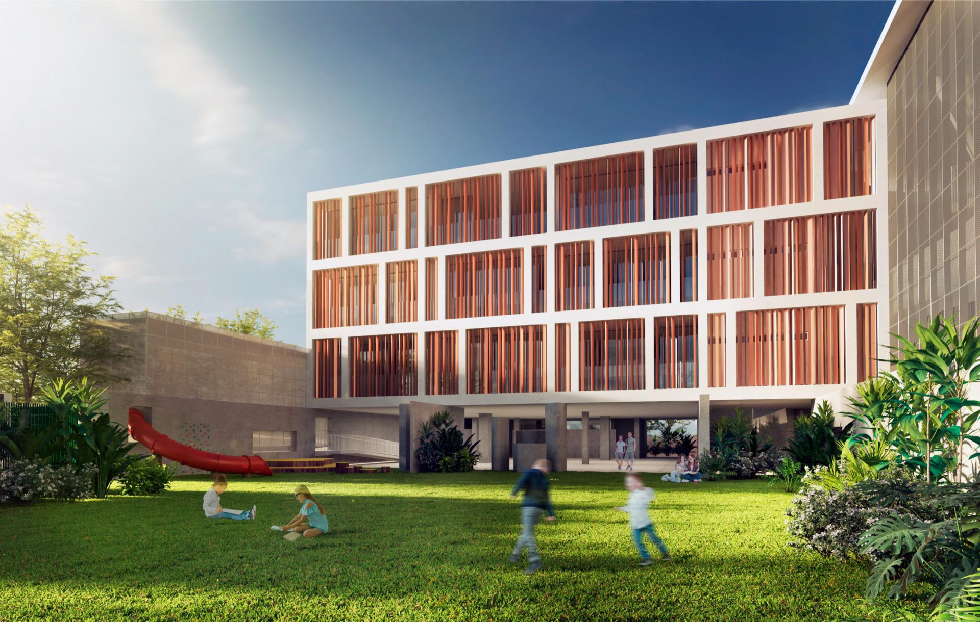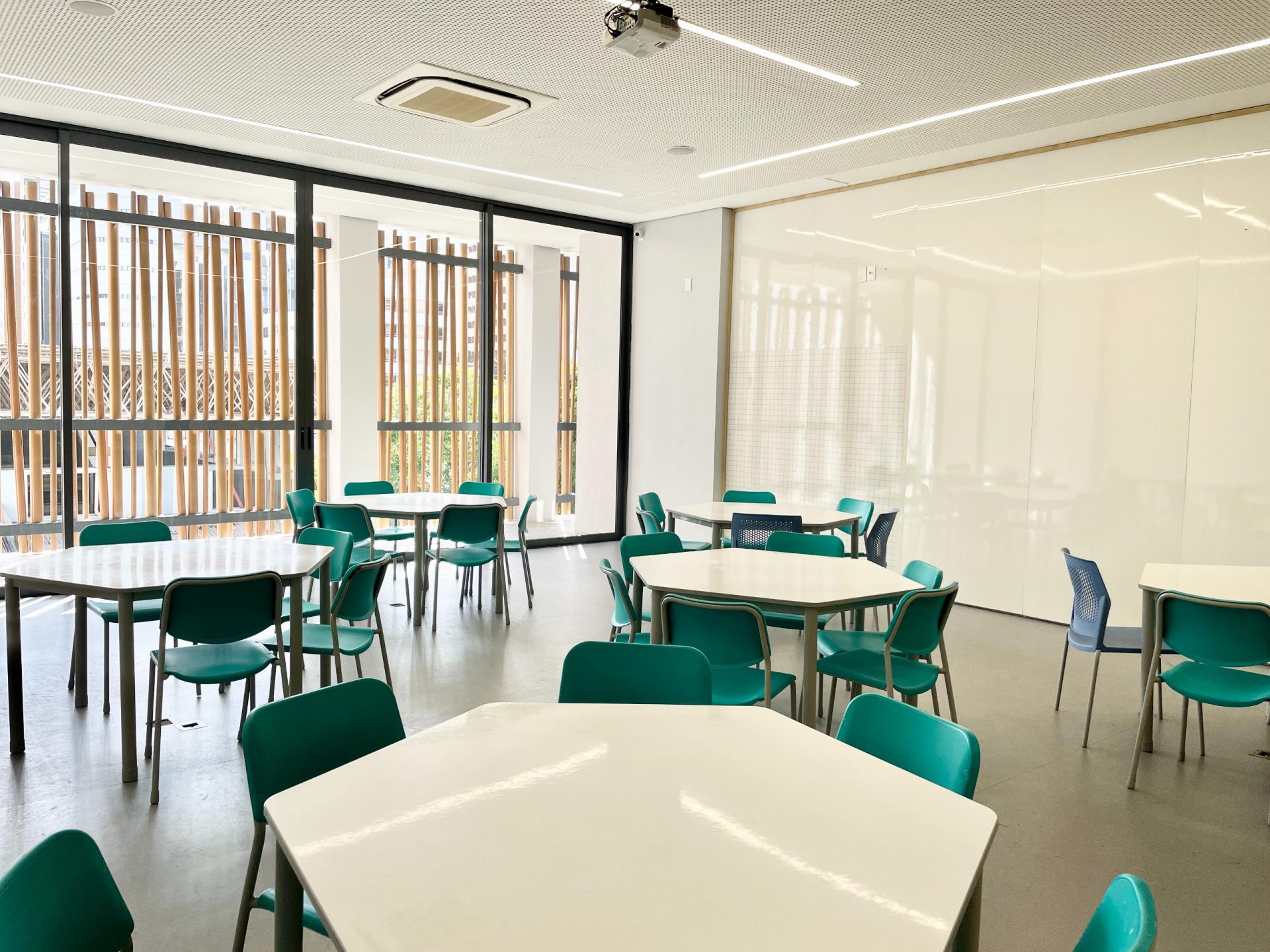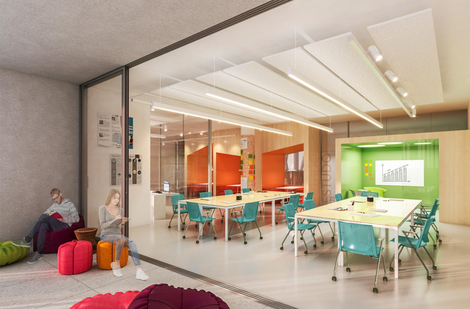Um átrio central cria uma conexão visual e permite aos usuários entenderem o espaço como um todo. Rampas e travessias em diferentes níveis oferecem uma circulação interessante. As salas de aula, modulares e flexíveis, encorajam diferentes configurações, podendo ter seu tamanho aumentado ou reduzido, acomodando diversos grupos e maneiras de ensinar. “Incubadoras” servem como espaços que se moldam à necessidade do momento, podendo servir como uma extensão da sala de aula ou como áreas separadas de concentração e foco dos estudantes. Salas de colaboração e criação criam um ambiente de aprendizado aberto, experimental e acolhedor.