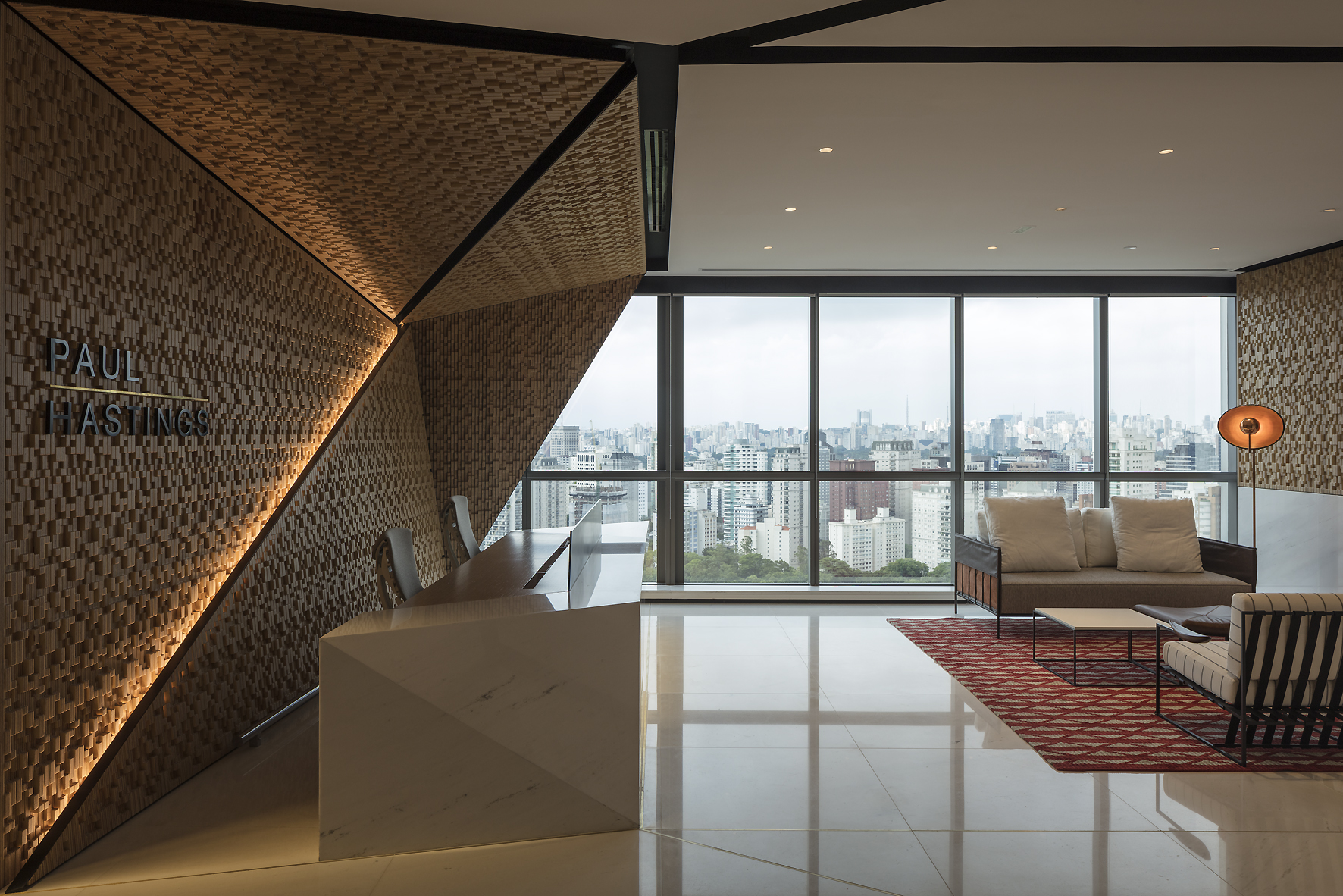 Para um escritório de advocacia estrangeiro que buscava se instalar em São Paulo, esse projeto, que reflete os valores da empresa e se adapta à realidade brasileira, ganhou o prêmio IIDA Design Awards na categoria de Interiores.
