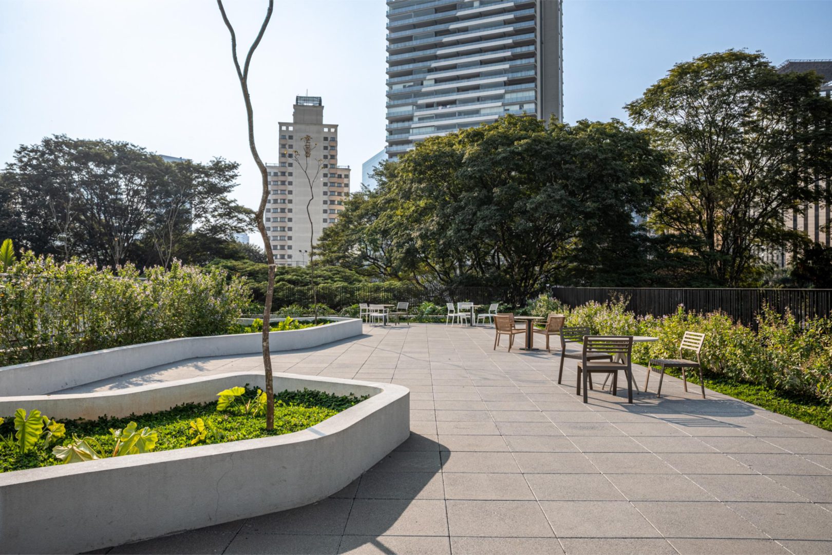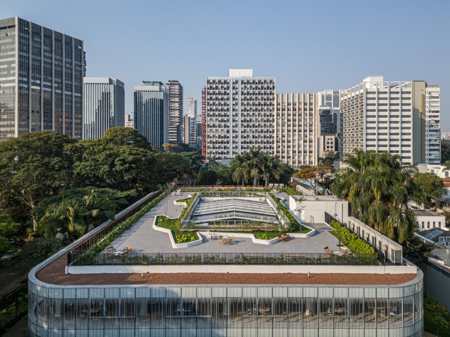 A cobertura, também accessível a todos os usuários, é um espaço verde, como um parque sob o edifício. Além de servir como área comum, oferecendo aos colaboradores mais contato com o exterior e a oportunidade de um ambiente de trabalho revigorante, também contribui para o controle térmico do edifício, e faz da cidade um ambiente mais vegetalizado.