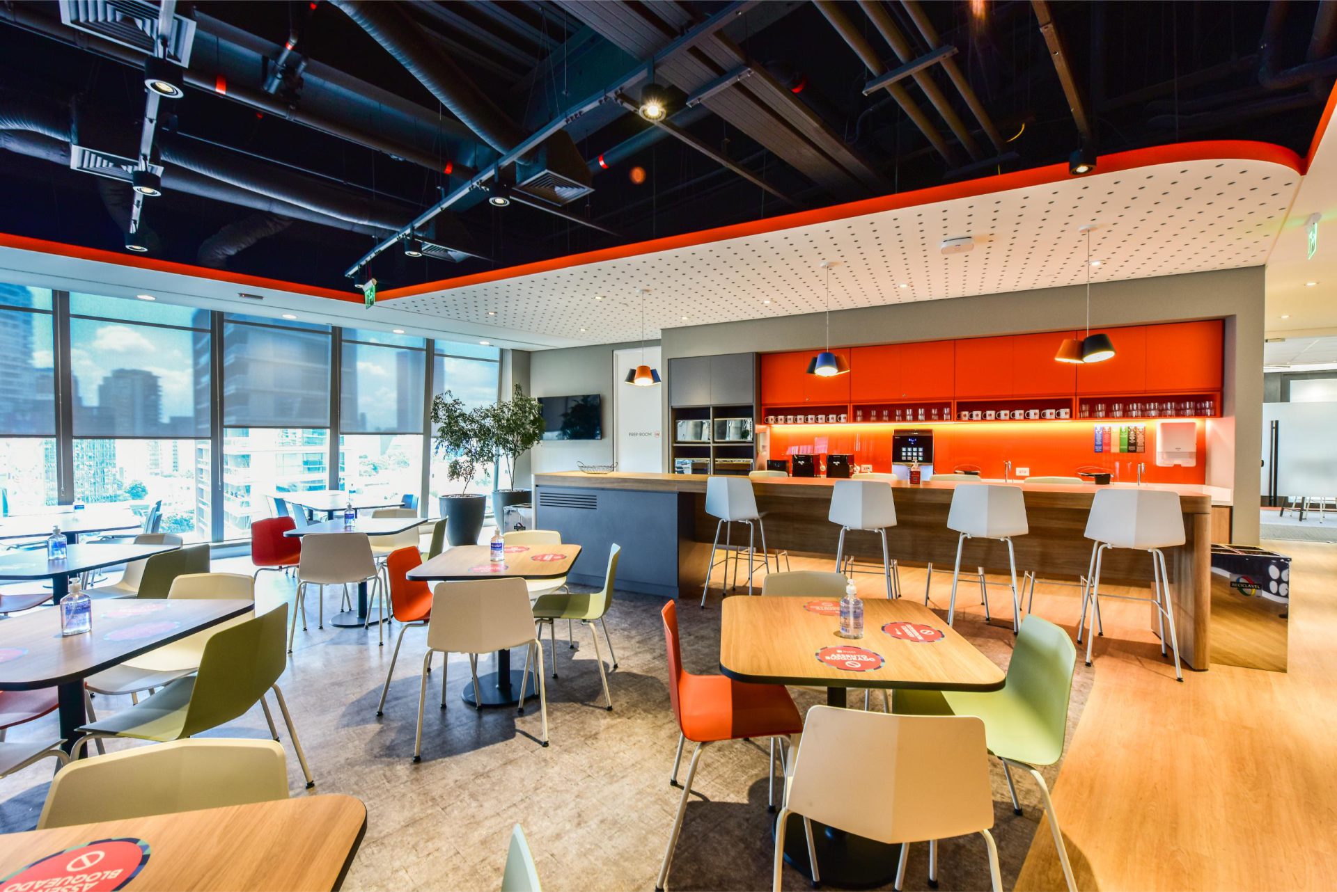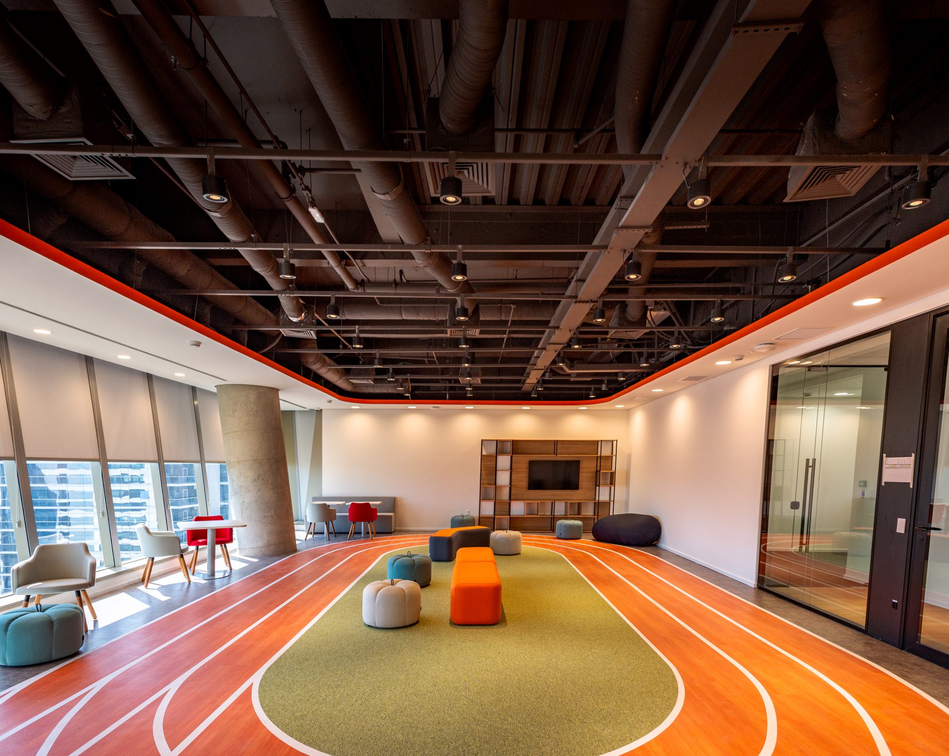 Cada andar possui muitas áreas de colaboração, tanto integradas nas estações de trabalho como em áreas específicas, como Collabs, Refeitórios (com espaço de auditório para reuniões gerais e/ou apresentações) e áreas de Wellbeing (Meditação, Massagem, Barbeiro, Manicure, Biblioteca, Game Room).