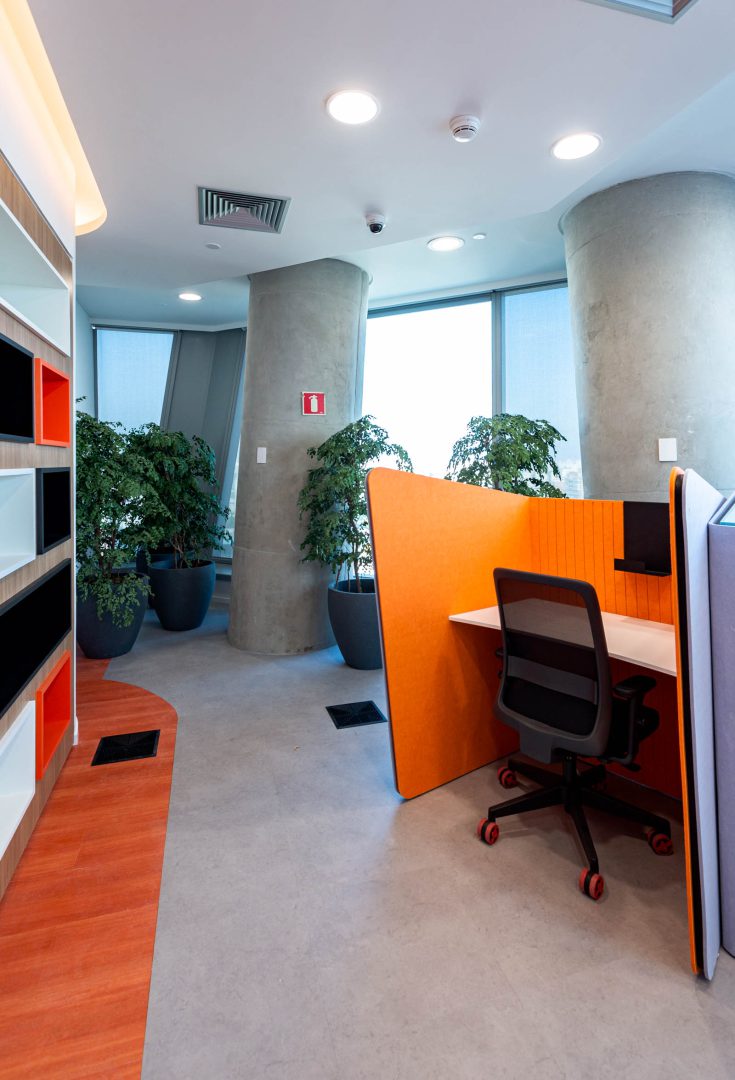 A parceria com a Shopee se iniciou em 2021, frente a um cenário de pandemia. Além do desafio de auxiliar um cliente internacional a se estabelecer no Brasil em um período de intensas restrições e mudanças, a Zien contribuiu com um design inovador, que não só levou em consideração os guidelines existentes, mas também os adaptou à realidade brasileira. Os escritórios reforçaram a identidade da Shopee, contribuindo para a promoção da marca e da cultura dos seus colaboradores. No total, projetamos 13 andares ao longo de 2 anos de trabalho, incrementando a relação com o cliente a cada fase.